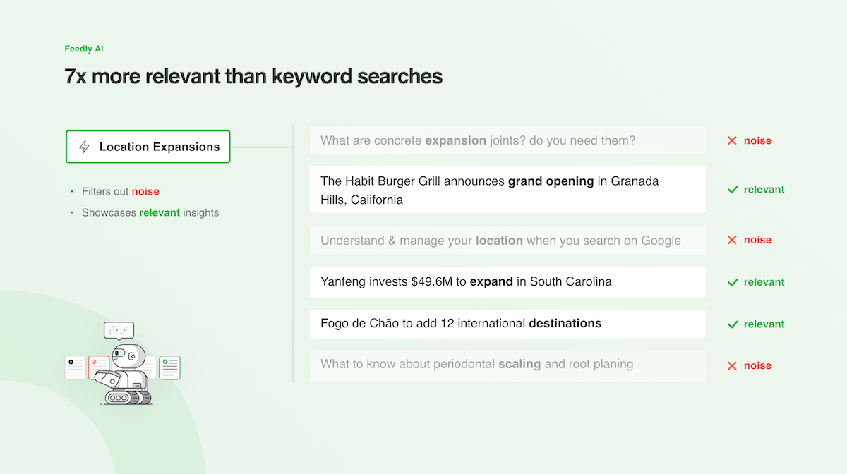 Location Expansion is one of the machine learning models included in Feedly for Market Intelligence. Start a free 30-day trial to see how Feedly can help you speed up your market intelligence.